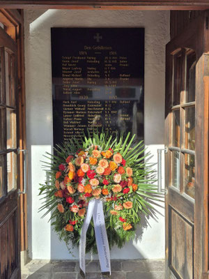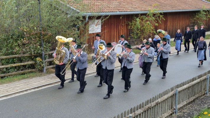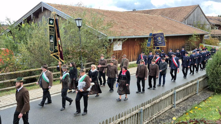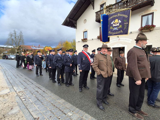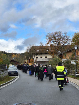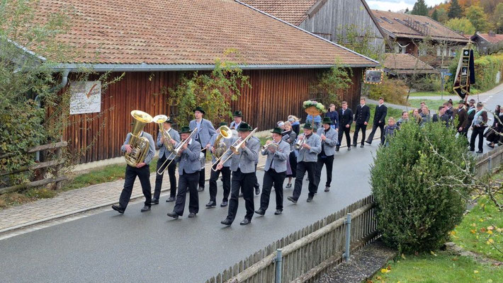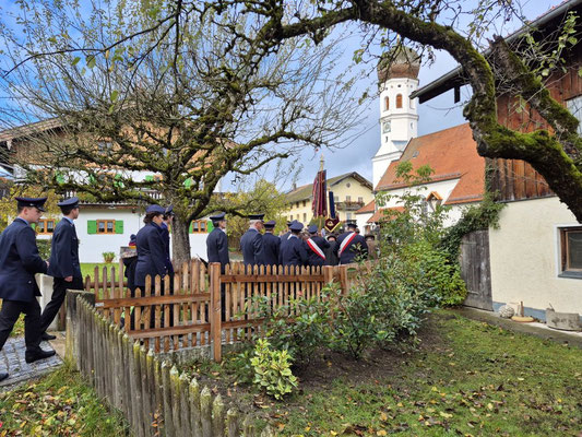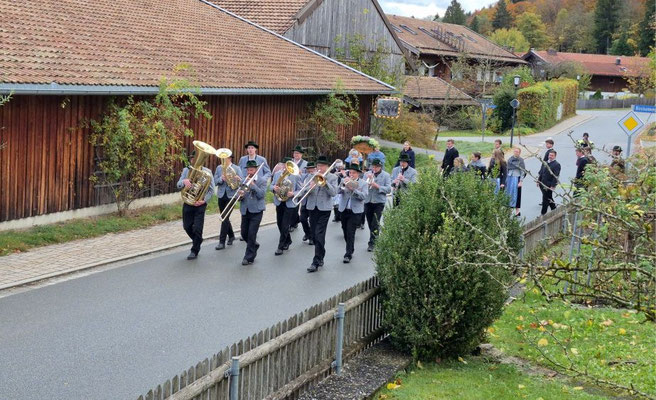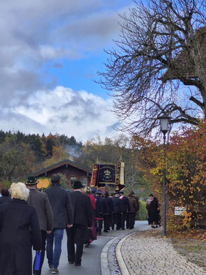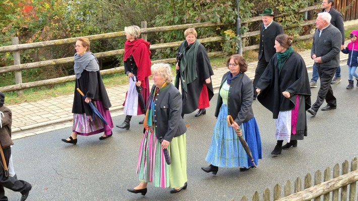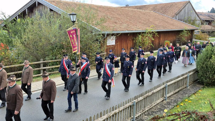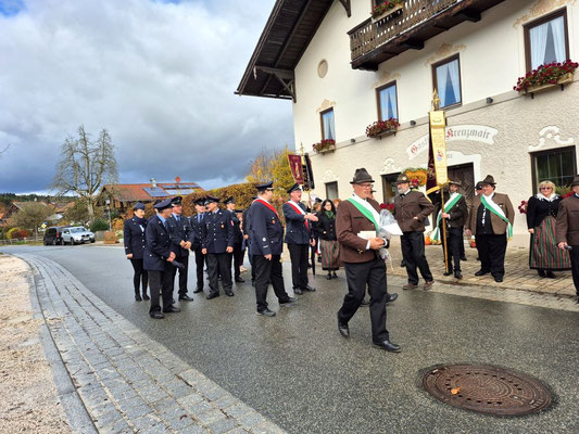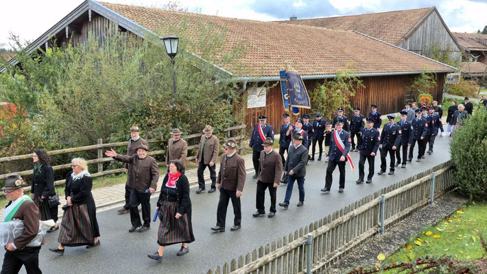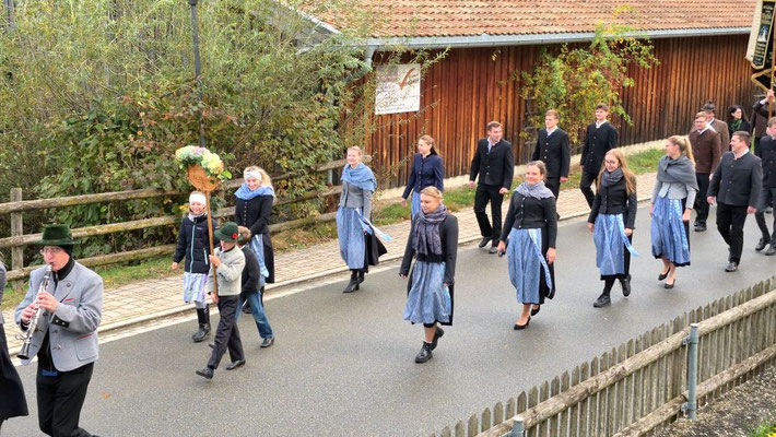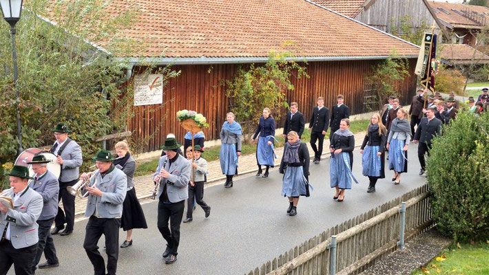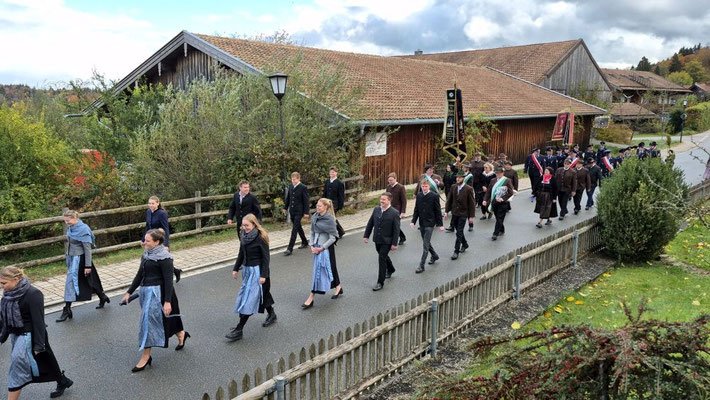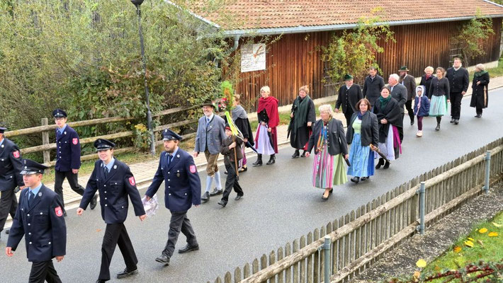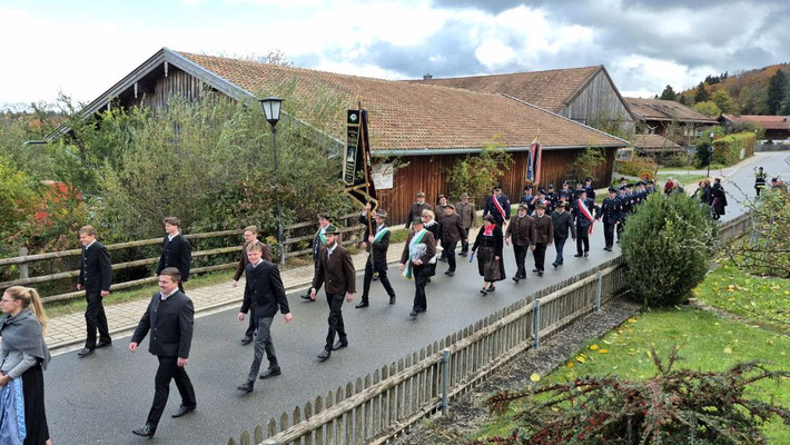 Nach der Aufstellung zum Kirchenzug marschierten die Vereine unter Führung der Willinger Musi in die Kirche wo Pater Ignatius die Messe zelebrierte. Nach dem stimmungsvollen Totengedenken und der Kranzniederlegung durch den Burschenverein gings zurück zum Kreuzmair wo ein warmer Saal auf uns wartete. Mit Musik, bei gutem Essen und Trinken ließen die Mitglieder den Tag ausklingen.